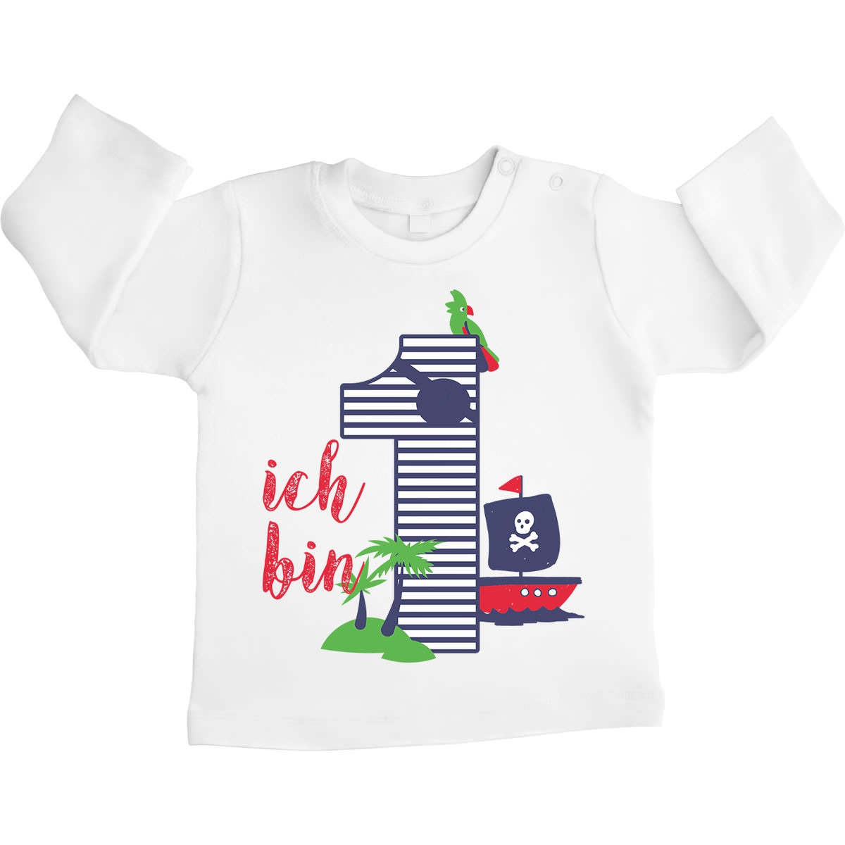 Ich bin 1 Jahr Piraten Geburtstag Geschenk Unisex Baby Langarmshirt Gr. 66-93