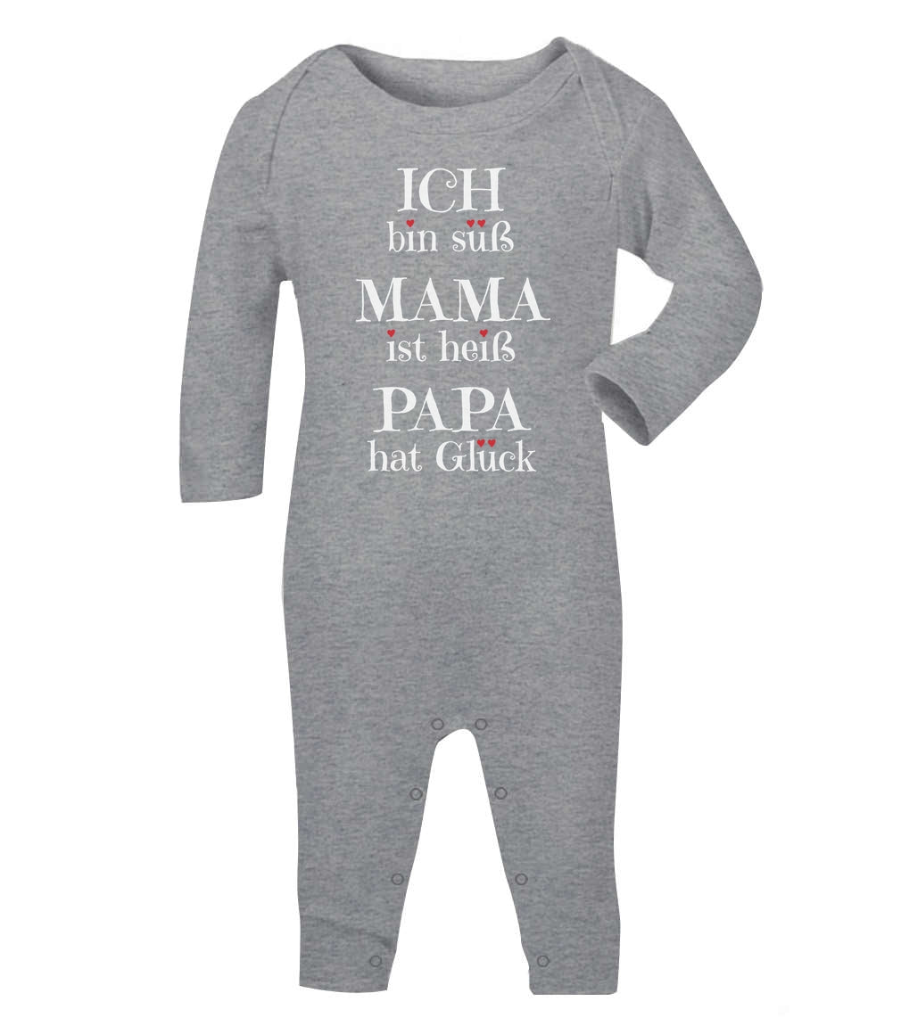 Ich bin süss, Mama ist heiß, Papa hat Glück Baby Strampler Strampelanzug