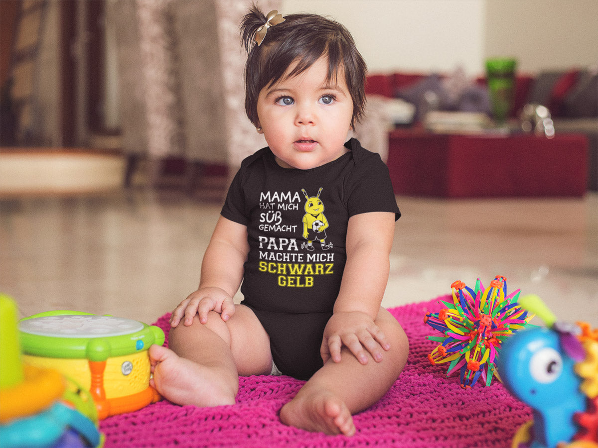 Mama hat mich süß gemacht Papa machte mich Schwarz Gelb Baby Body Kurzarm-Body