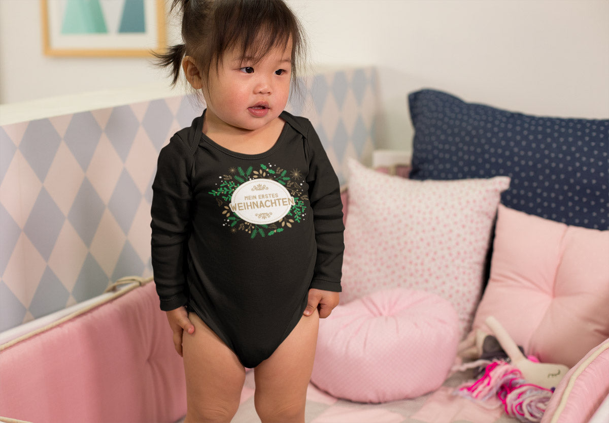 Mein Erstes Weihnachten im Weihnachtskranz Baby Langarm Body