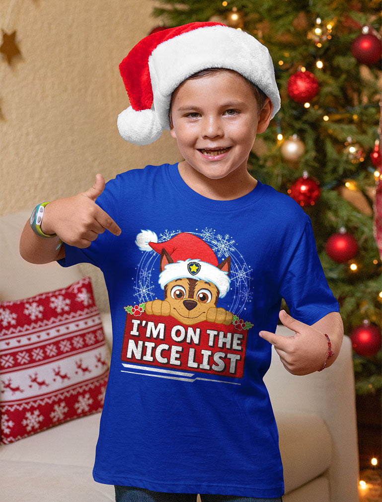 Paw Patrol Chase Ugly Christmas I'm On The Nice List Kinder Jungen T-Shirt