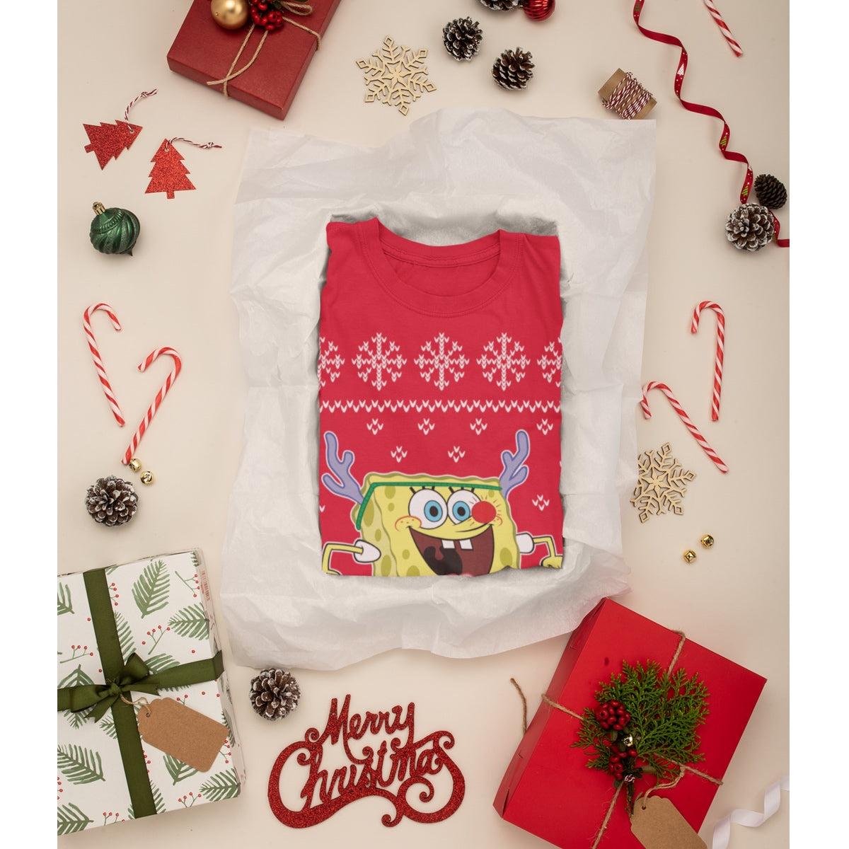 Eine tolle Geschenkidee zu Weihnachten für Spongebob SquarePants Fans. Witziges Ugly Christmas Design mit dem Schwammkopf als Rentier.