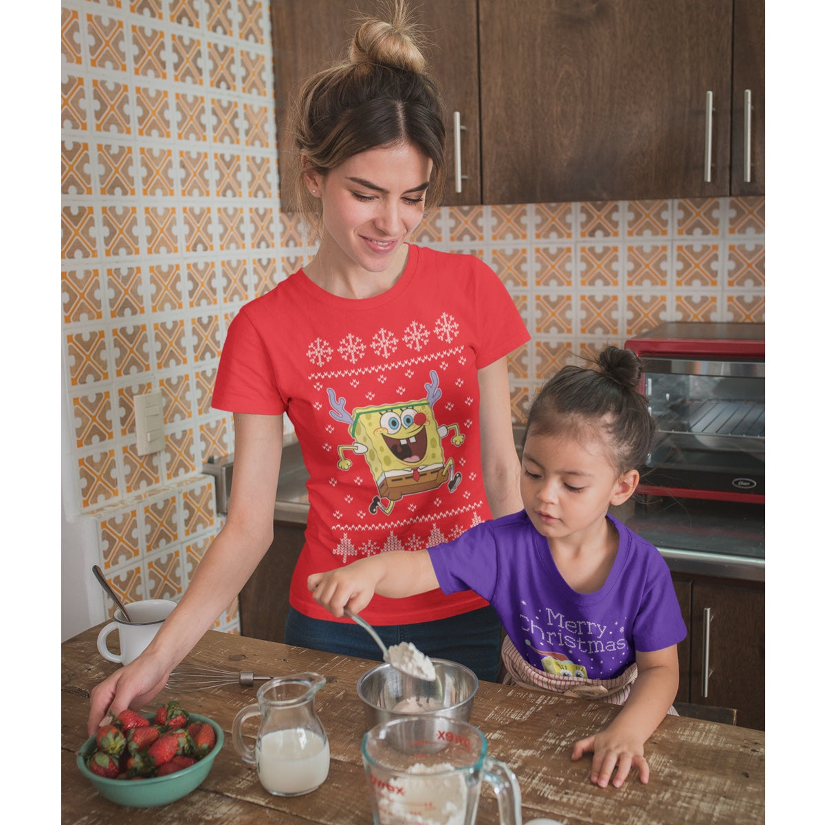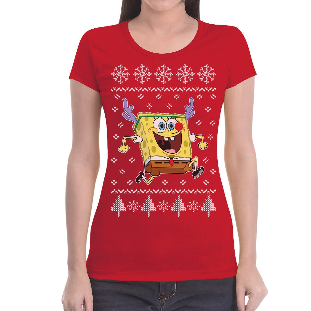 Spongebob SquarePants Rentier Ugly Christmas Damen T-Shirt Slim Fit